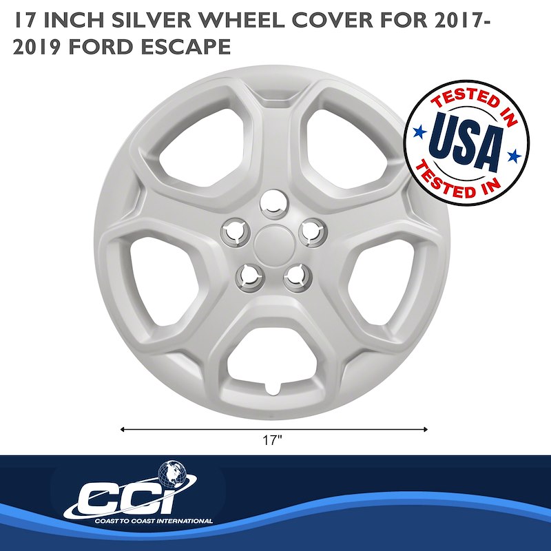 Restore the factory appearance of your Ford Escape with this set of four 17-inch silver wheel covers, designed specifically for 2017–2019 Ford Escape S models. Featuring a clean OEM-style 5-spoke design, these hubcaps are a cost-effective alternative to replacing original wheel covers that are lost, damaged, or worn.