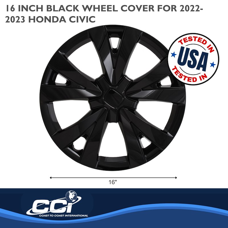 Restore the factory appearance of your vehicle with this Coast to Coast International 16-inch black 5-spoke hubcap set, designed specifically for select Honda Civic models equipped with 16-inch steel wheels. These wheel covers are a reliable and cost-effective replacement for lost, damaged, or worn OEM hubcaps.