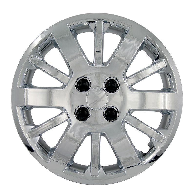 Wheel Cover; 15 Inch; 12 Spoke; Chrome Plated; Plastic; Set Of 4; Lug Covers