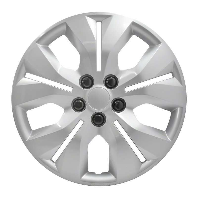 Wheel Cover; 16 Inch; 5 Split Spoke; Silver; Plastic; Set Of 4; Lug Covers